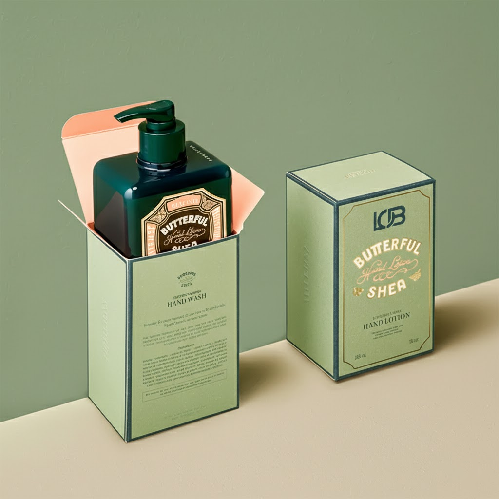 Custom-printed lotion boxes for pump bottles, squeeze tubes, and lotion containers. Cardboard and kraft, built for any brand aesthetic.